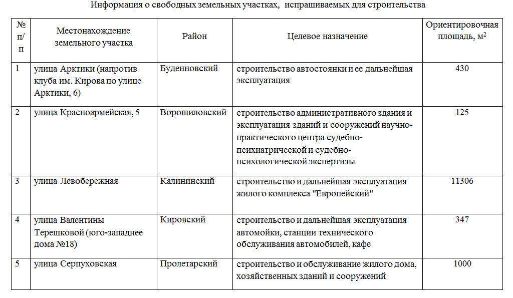 Земельные участки, на которые поступили ходатайства с просьбой о предоставлении разрешения на разработку документации по землеустройству по отводу земельных участков в пользование.