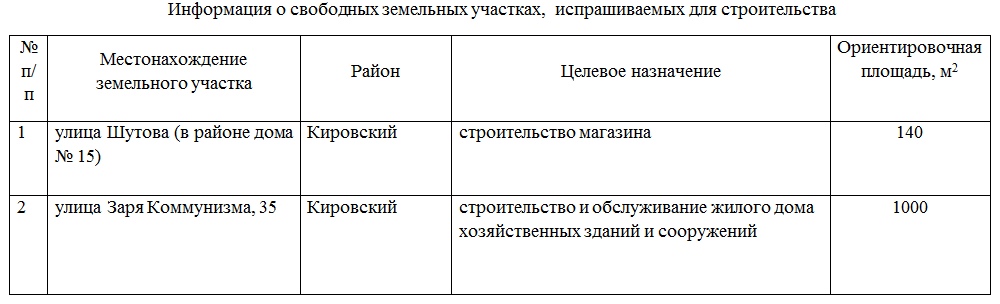 Земельные участки, на которые поступили ходатайства с просьбой о предоставлении разрешения на разработку документации по землеустройству по отводу земельных участков в пользование.