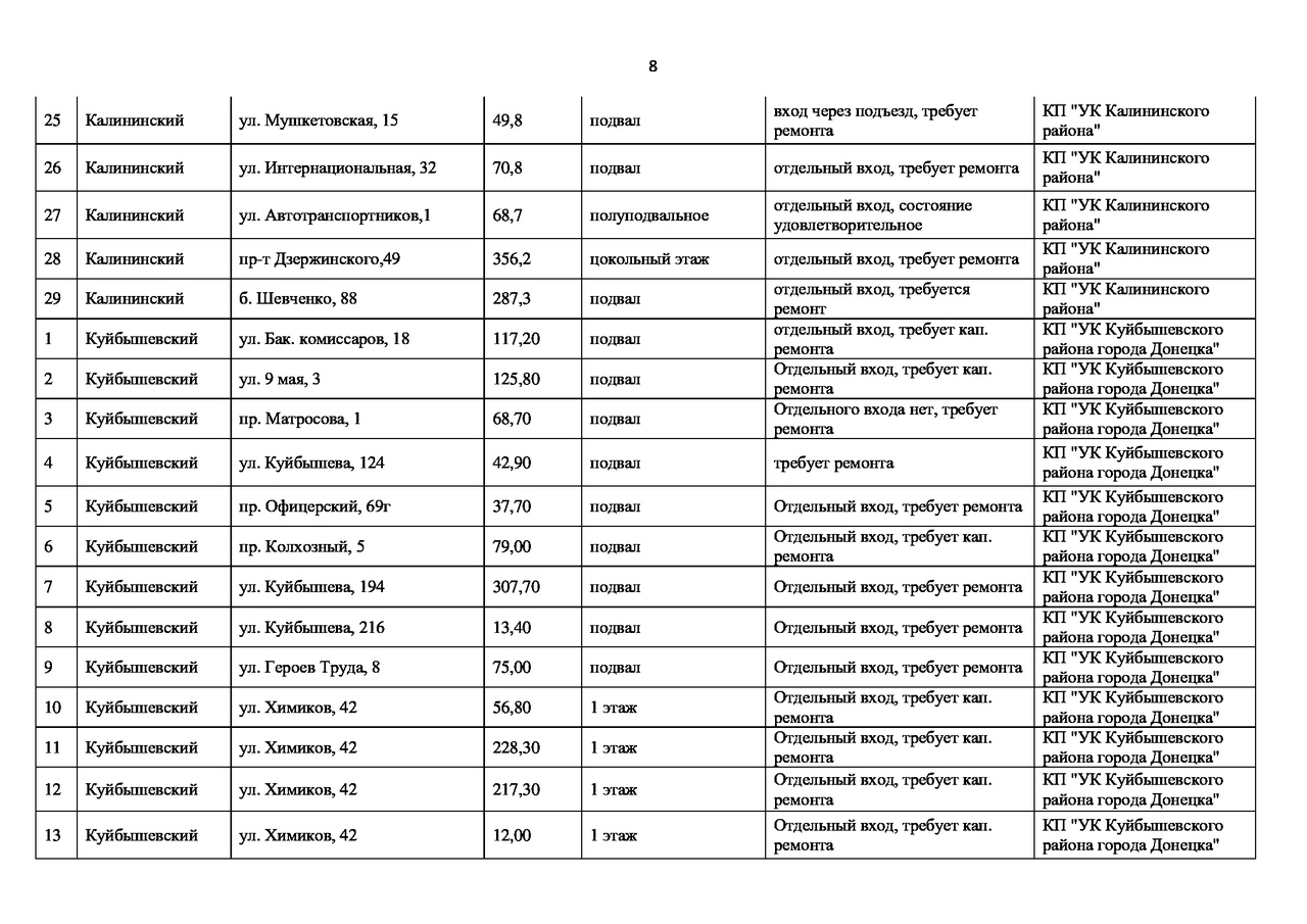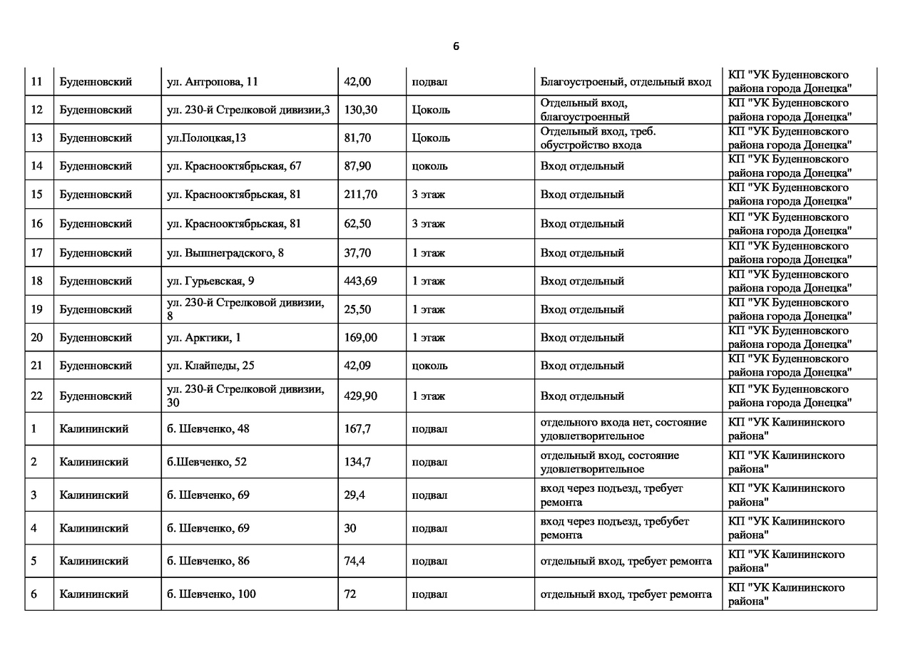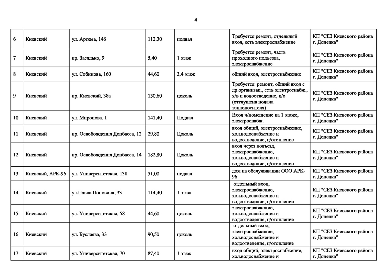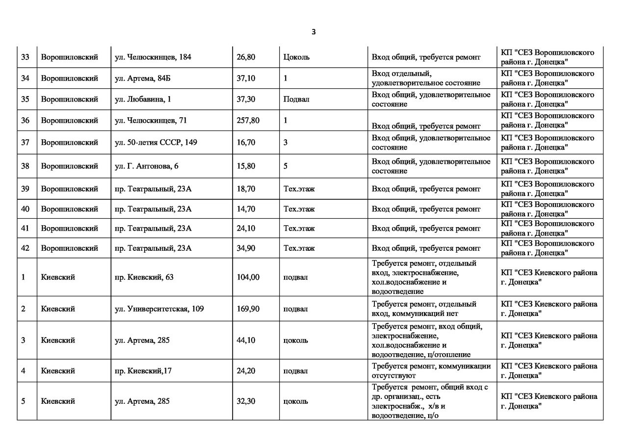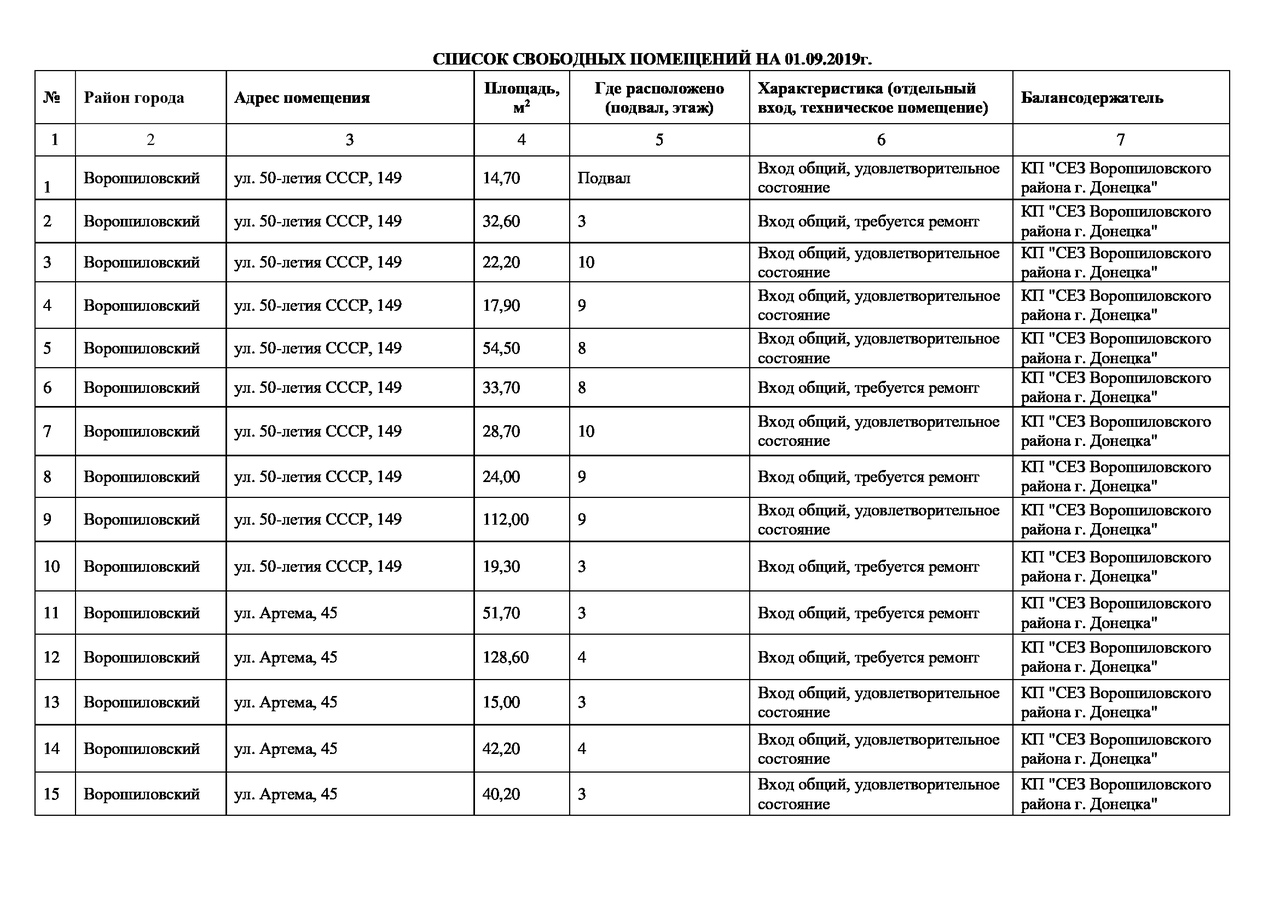 СПИСОК СВОБОДНЫХ ПОМЕЩЕНИЙ НА 01.09.2019г.