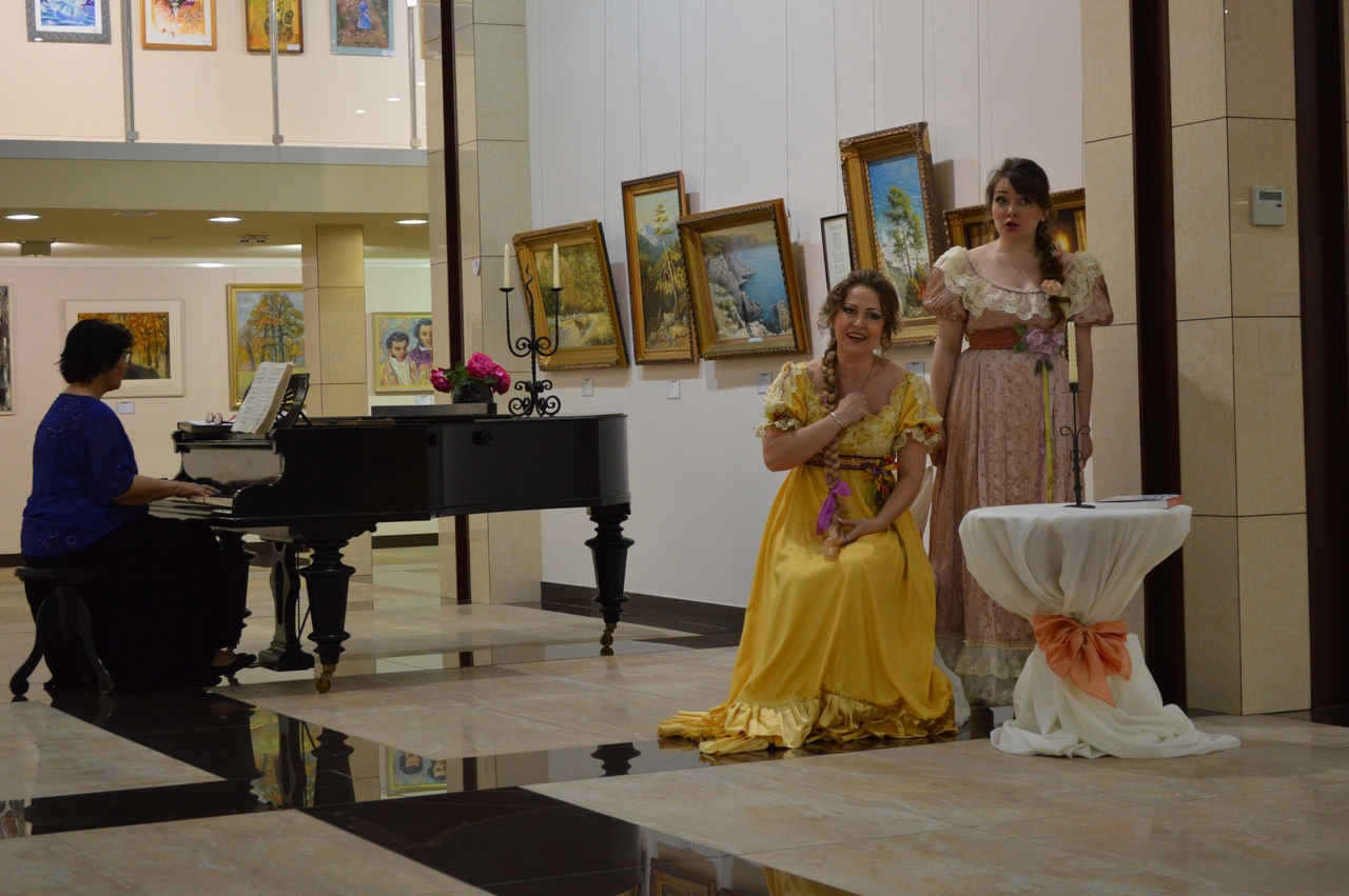 Изумительный голос солистов Донецкого государственного академического театра оперы и балета им. А.Б. Соловьяненко погрузил всех присутствующих в музыкальный мир пушкинской поэзии. Романс П. Чайковского «Не пой красавица при мне» исполнил Вадим Воловчук, партия рояля - Нина Ильина. Музыкальные иллюстрации «Слыхали ли вы?» из оперы «Евгений Онегин» и «Уж вечер» из оперы «Пиковая дама» блестяще исполнили лауреаты международных конкурсов Светлана Малеева и Дарья Терещенко.