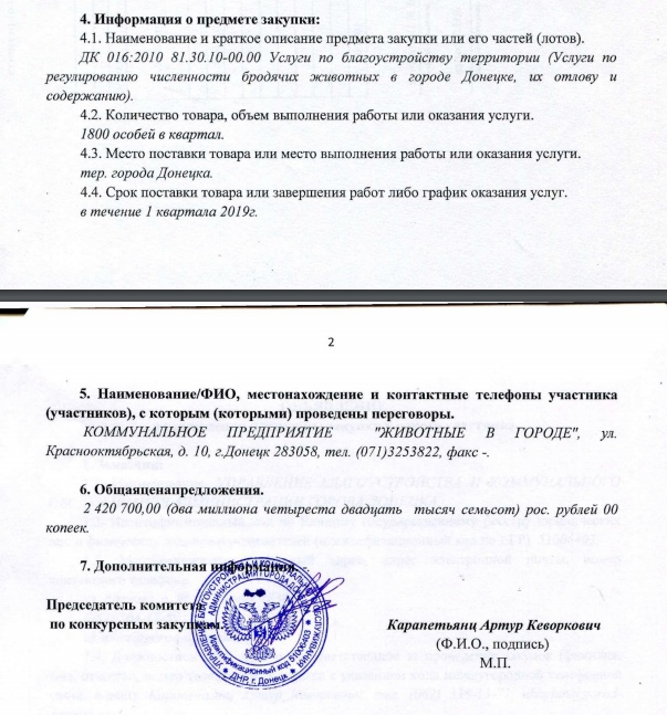 Объявление о применении процедуры закупки у одного участника Управление благоустройства и коммунального обслуживания администрации г.Донецка Категория: Тендеры и закупки 22.01.2019 11:50