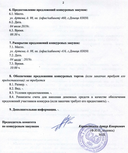 Объявление о проведении процедуры открытого конкурса Управление благоустройства и коммунального обслуживания администрации г.Донецка Категория: Тендеры и закупки 13.06.2019 15:10