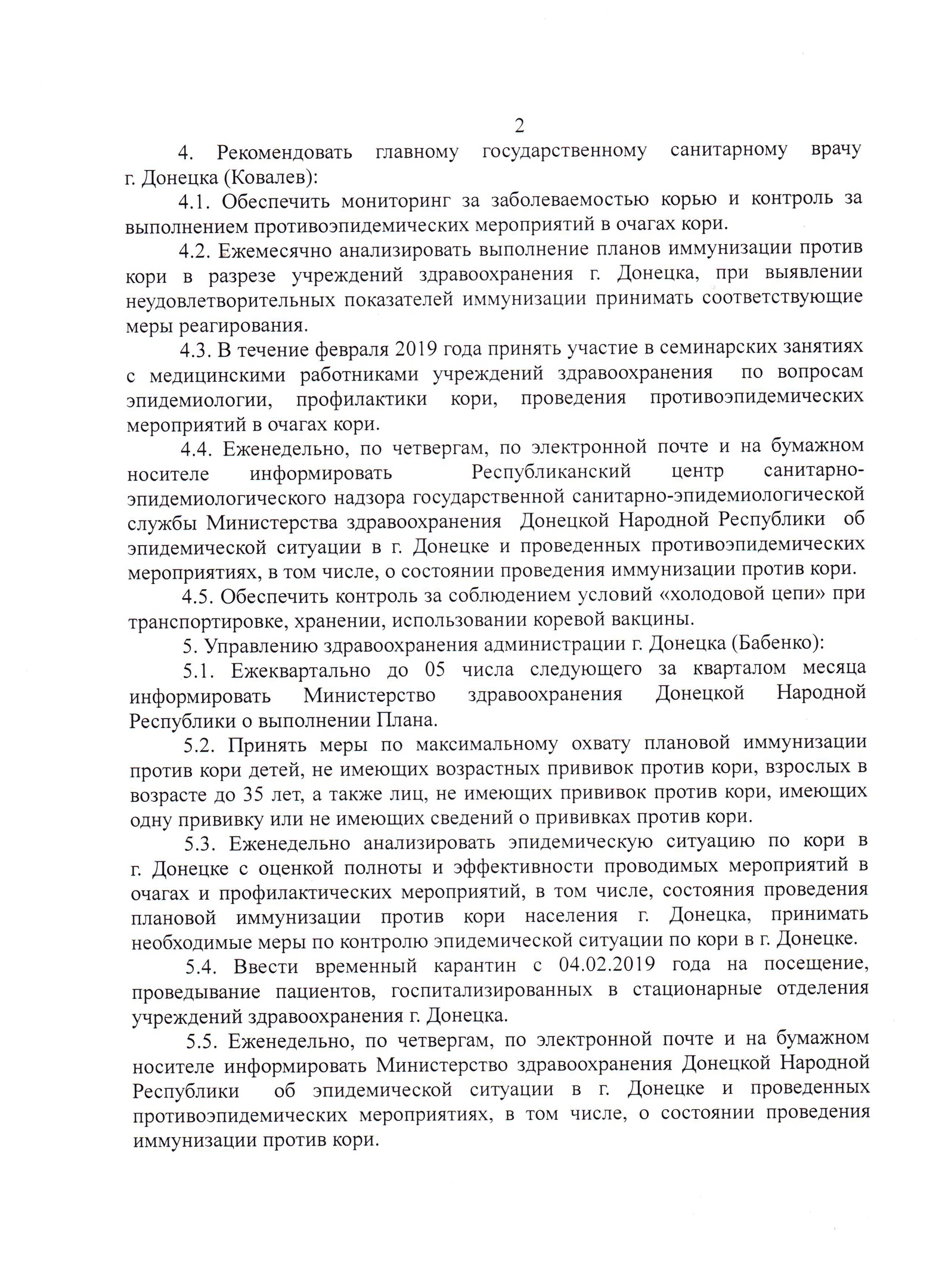 Распоряжение главы администрации г. Донецка от 04.02.2019 № 132 "О создании Оперативного штаба по ликвидации неблагополучной эпидемической ситуации по кори на территории г. Донецка" Категория: Распоряжение главы администрации