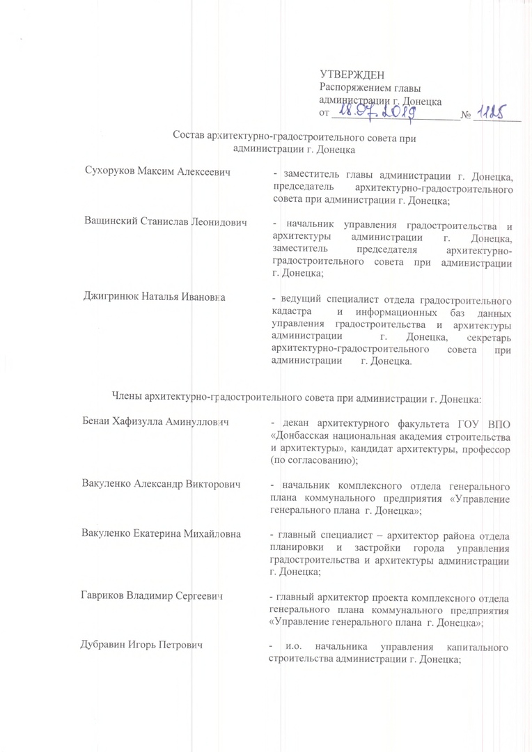 Распоряжение главы администрации г. Донецка от 18.07.2019 №1125 "О создании архитектурно - градостроительного совета при администрации г. Донецка" Категория: Распоряжение главы администрации