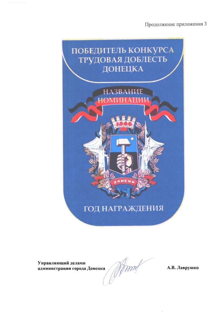 Распоряжение главы администрации г. Донецка от 06.09.2019 №1444 "Об учреждении ежегодного городского конкурса "Трудовая доблесть Донецка" под патронатом главы администрации города Донецка"